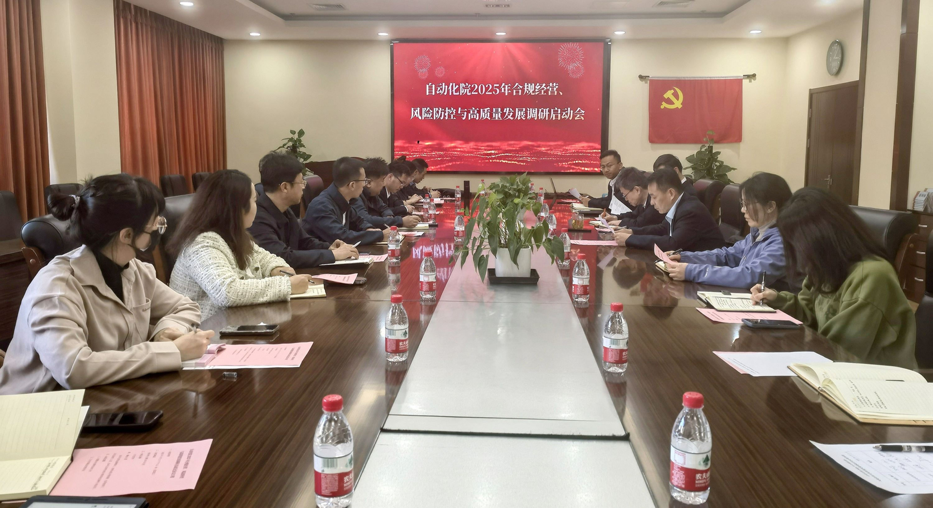 3月21日,自动化院召开2025年合规经营、风险防控与高质量发展调研启动会。会议贯彻落实集团公司2025年度工作会、法律合规工作会议以及自动化院2025年度经营工作会议精神,充分发挥法治合规体系在推进自动化院绿色化、智能化战略实施的赋能作用,安排部署专题调研工作。自动化院副总经理、总法律顾问王向东,自动化院纪委书记刘永凯,自动化院副总经理贺智勇出席会议。各职能部门、所属单位法律合规主管领导以及相关人员参加会议。